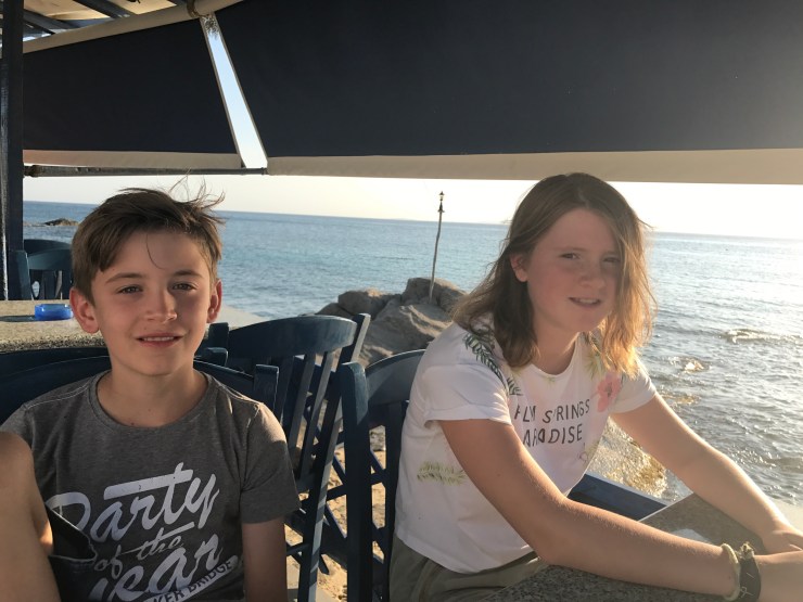 Ons mooi uitzicht op de baai ruilen we in voor een terras met zicht op het zwembad, wat de kinderen dan uiteraard weer de max vinden voor een snelle duik.