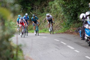 Er was net voor de passage een schifting gebeurd, waardoor je een kopgroep, de achtervolgers (aangevoerd door Alaphilippe ) en het peloton (aangetrokken door onze Wout) had. Dus dat was een meevaller en veel leuker als toeschouwer dan 1 langgerekt peloton.