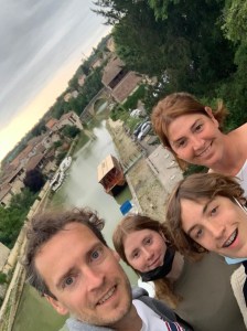 We drinken een Floc de Gascogne en eten er een stukje foie bij. De kinderen vinden niet dadelijk hun goesting tussen het eten (en qua drank is er enkel alcohol), dus besluiten we naar Nérac te rijden om te eten bij L’Escadron Volant op het pleintje bij de chateau de Nérac. Dat gedeelte van het stadje voelt erg Toscaans aan. Het is een mooie afsluiter van dit stuk van onze vakantie. De streek is ons enorm bevallen, het is « La france profonde » zoals Robin zegt: puur natuur, eenvoudige maar vriendelijke mensen, de natuur heeft hier ruimte voor vrij spel en de enorme rust die ervan uitstraalt is al overheersend. We vertrekken hier met een zeer goed gevoel.