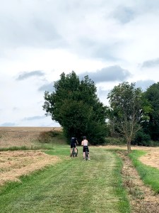 Daarna pikken we de draad terug op op de « voie verte » tot op het eindpunt. Je kan uiteraard nog verder rijden, maar dan is de weg niet helemaal goed aangelegd en we moeten ook nog de hele weg terug. We hadden ongeveer om 16h terug afgesproken om de fietsen in te leveren.