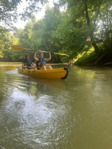 Willem werd op de valreep nog kletsnat toen hij « gezwind » aan de aanlegkaai uitstapte om onze kano’s op het droge te trekken. Hij dacht dat het op dat stuk ondiep was…niet dus! We lagen allemaal strijk in onze kano.