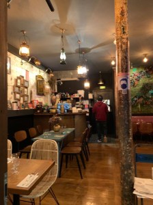 Montmartre zelf (het gedeelte boven de kerk) is zeer gezellig en het is aanlokkelijk om hier iets te eten, maar we weten dat dit de grootste « tourist trap » van heel Parijs is, dus gaan we stilaan de berg af naar beneden (het is ondertussen al 9 uur) om iets te zoeken om te eten. We belanden bij een Indiër met een mooi terras op een mooie plaats én (in Parijs checken we toch altijd graag even) stevige recensies. Bovendien zien we dat er nogal wat locals zitten, dat stelt ons toch ook altijd gerust.