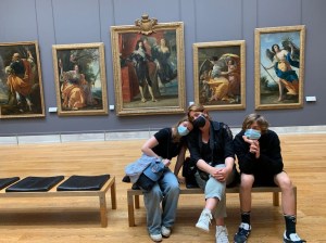En wij flaneerden nog wat verder langs Rive Gauche tot aan het Louvre. Het was een korte wachtrij, op een 10- tal minuten waren we binnen. In normaal omstandigheden sta je hier zonder reservatie of « skip the line » vlot 2 uur aan te schuiven. Eens binnen was er nog even een schermutseling. In onze rugzak zat blijkbaar een kurkentrekker die ik had meegenomen van thuis. Je kent dat, zit je in een B&B of een huurhuis, wil je een fles wijn openen en niets te vinden: Tantalus en zo. Maar nu zorgde dit object ervoor dat Willem helemaal binnenstebuiten werd gekeerd en dat de kurkentrekker in de sectie « na het bezoek terug op te halen voorwerpen » werd opgeborgen.