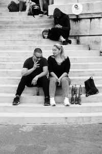 Om een uur of 7 trekken we richting Sacre Coeur en Montmartre, the place to be (zeker op een zondagavond) voor pubers (zoals die van ons) en jonge koppels. Meer hoeft dat ook niet te zijn. Ik kan me perfect inbeelden dat ik op 18 hier ook zou komen zitten met een stokbrood, wat kaas en een biertje (of in mijn geval: wijn). Mare kan ook al niet wachten tot ze alleen met wat vrienden hier naartoe kan komen. De sfeer is er onbetaalbaar, iedereen geniet, er zijn muzikanten en dansers die sfeer brengen. Het uitzicht is uiteraard ook fantastisch, maar dat is niet wat domineert.