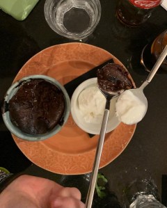 Ondertussen is het 9 uur en gaan we op zoek naar een restaurant. We besluiten eerst onze buurt wat te verkennen, keuze genoeg: een dumpling restaurant, Thai, Mexicaan, Italiaans, Oezbekistaan, Marrokaans, … Willem heeft zin in Mexicaans, maar die zit vol. Volgende poging is een tapasrestaurant, maar daar ook « complet» (het is natuurlijk zaterdagavond) en zo belanden we bij een Italiaan die nog een plekje voor ons heeft. Een eenvoudige pasta, daar had ik nu eigenlijk ook wel zin in. Mare en Lasse delen trouwens zoals het in een stad als Parijs moet, heel romantisch een dessertje.