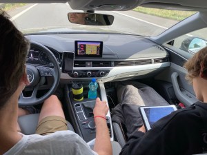 Onze rit daarentegen schoot niet echt op. Zeggen dat er megafiles waren is teveel, maar wel aardig wat van het type accordeon. Komt nog eens erbij dat we weeral af te rekenen kregen met zeer zware buien, die ons het zicht belemmerden.