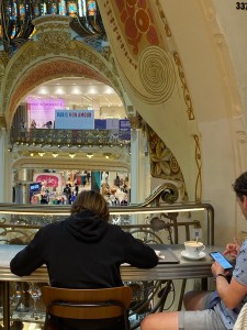 We hadden dus ruime keuze. Wat we zeker wilden doen was “Galeries Lafayette”, een gebouw met toch wel wat historische waarde en ook met alle grote merken, net zoals op de Champs-Élysées. Enige voordeel: je kan je er aan vergapen zonder dat je eerst volledig gescreend wordt vóór je binnen mag, wetende dat je zelfs nog geen paar sokken wil of kan kopen.