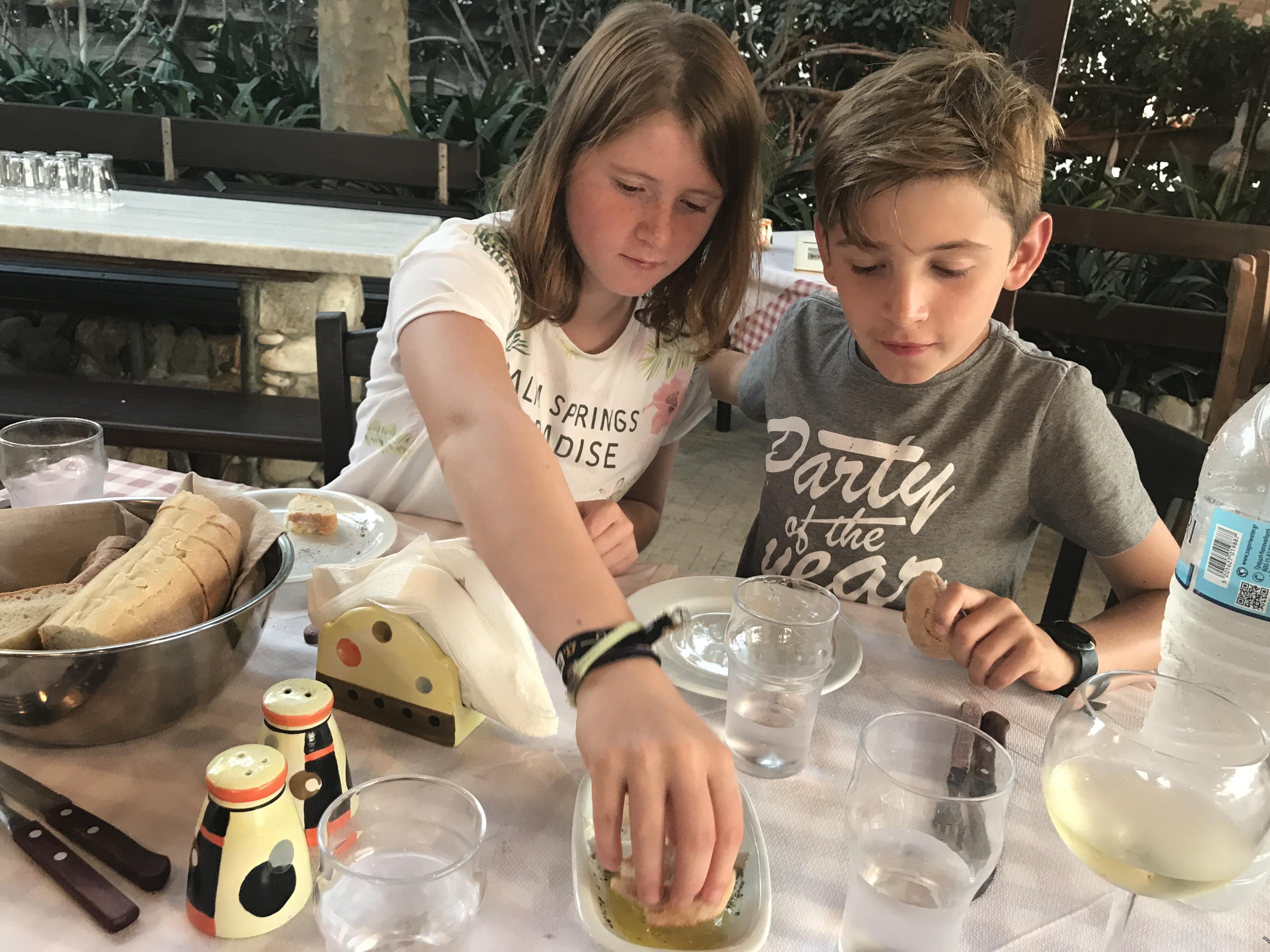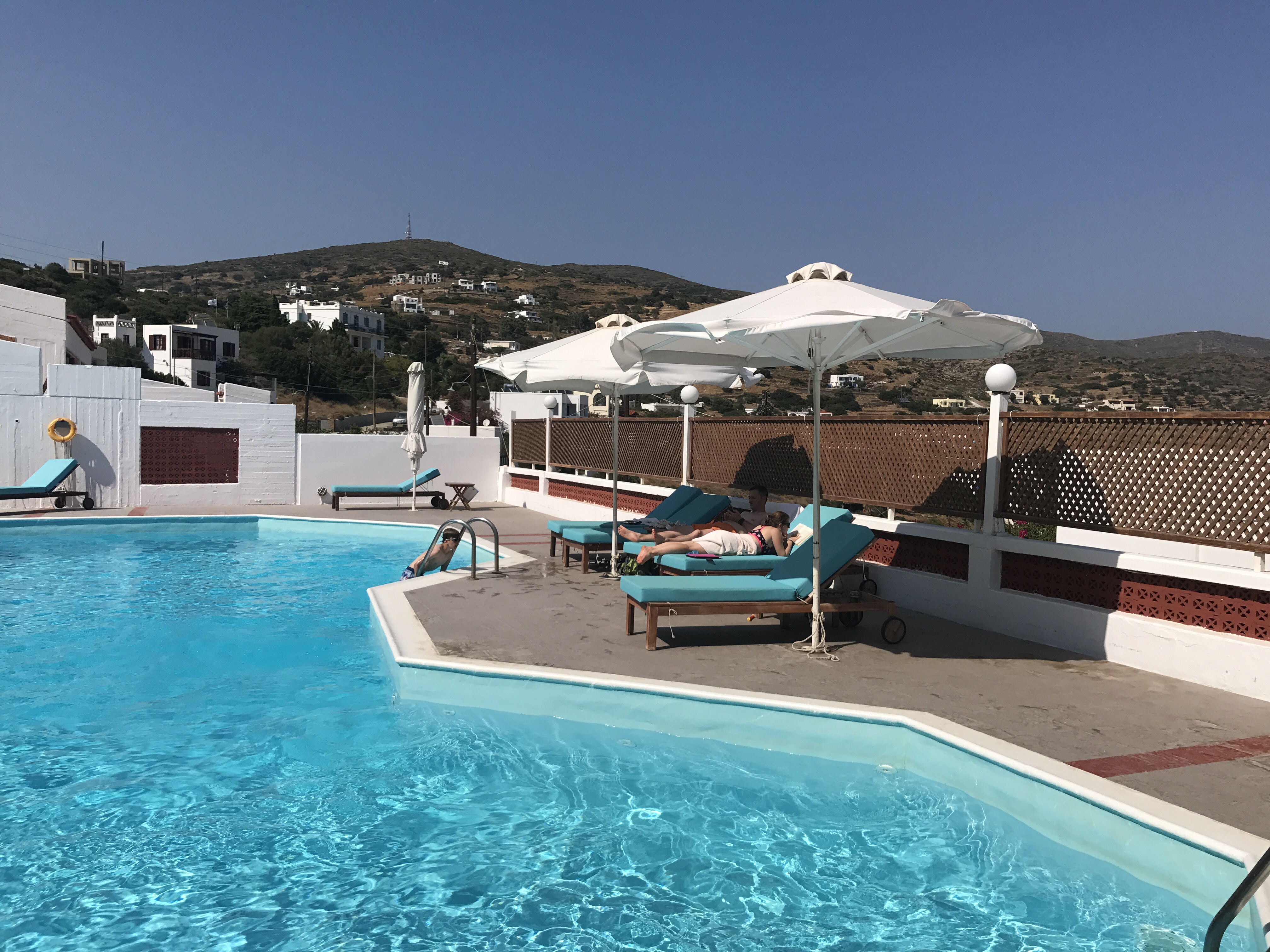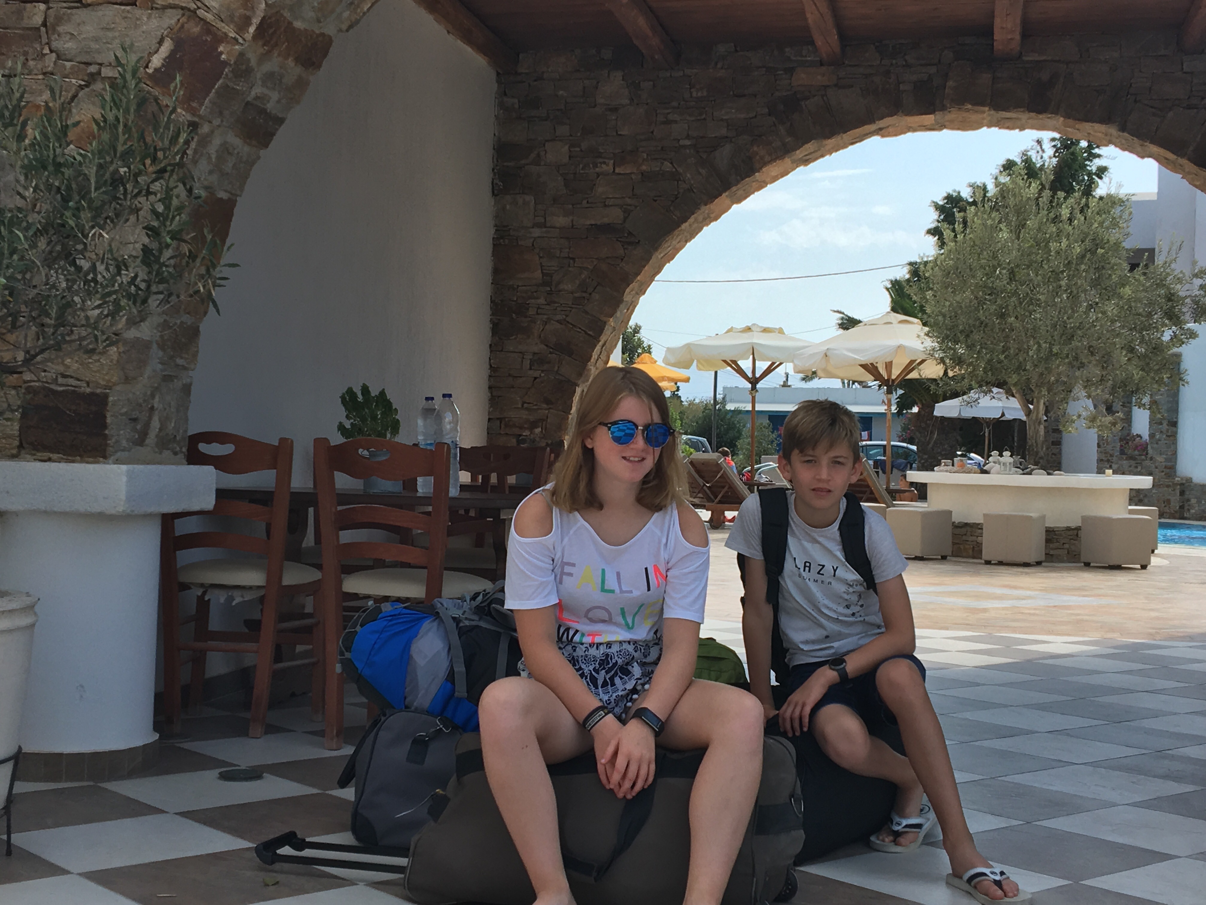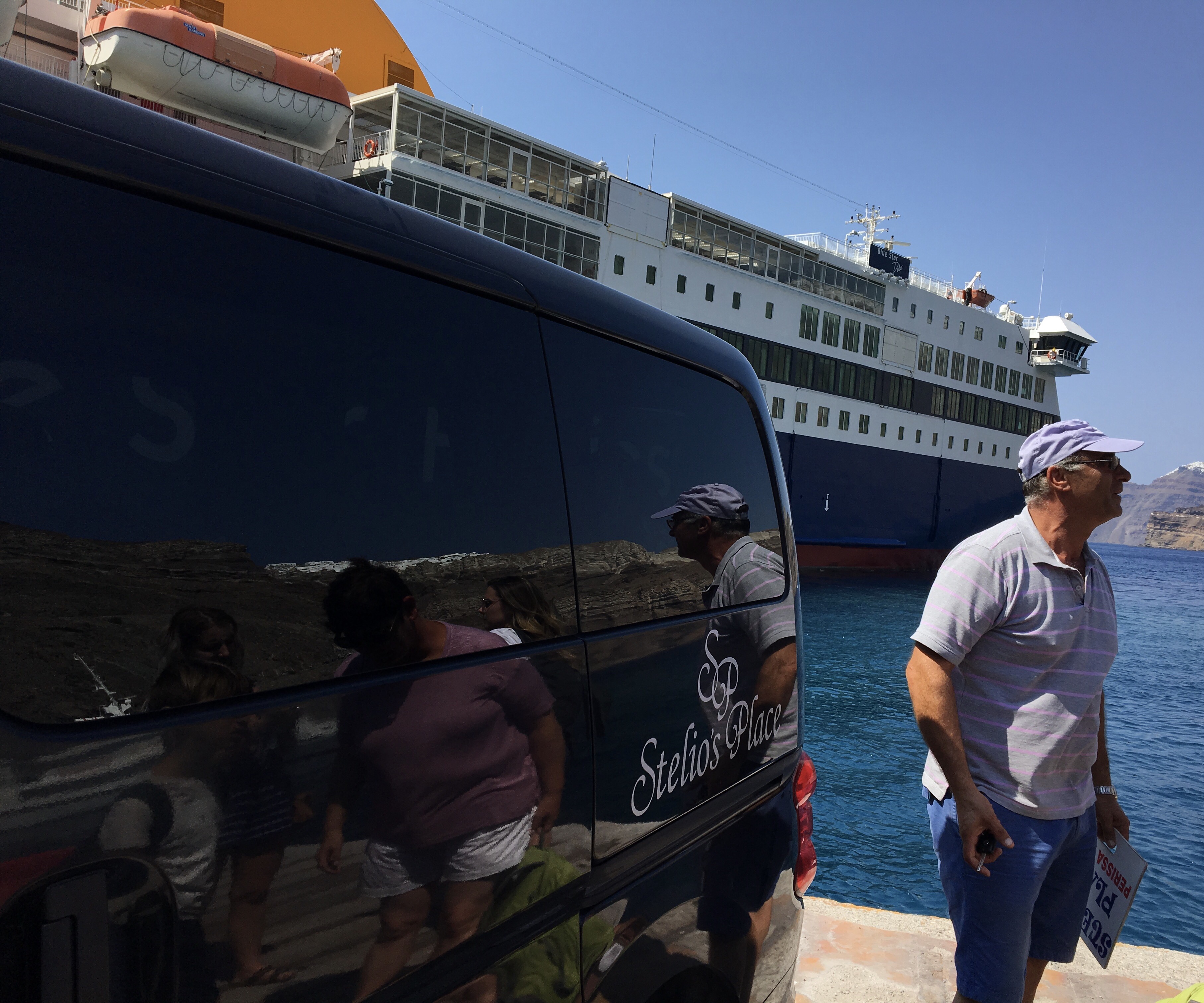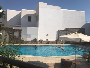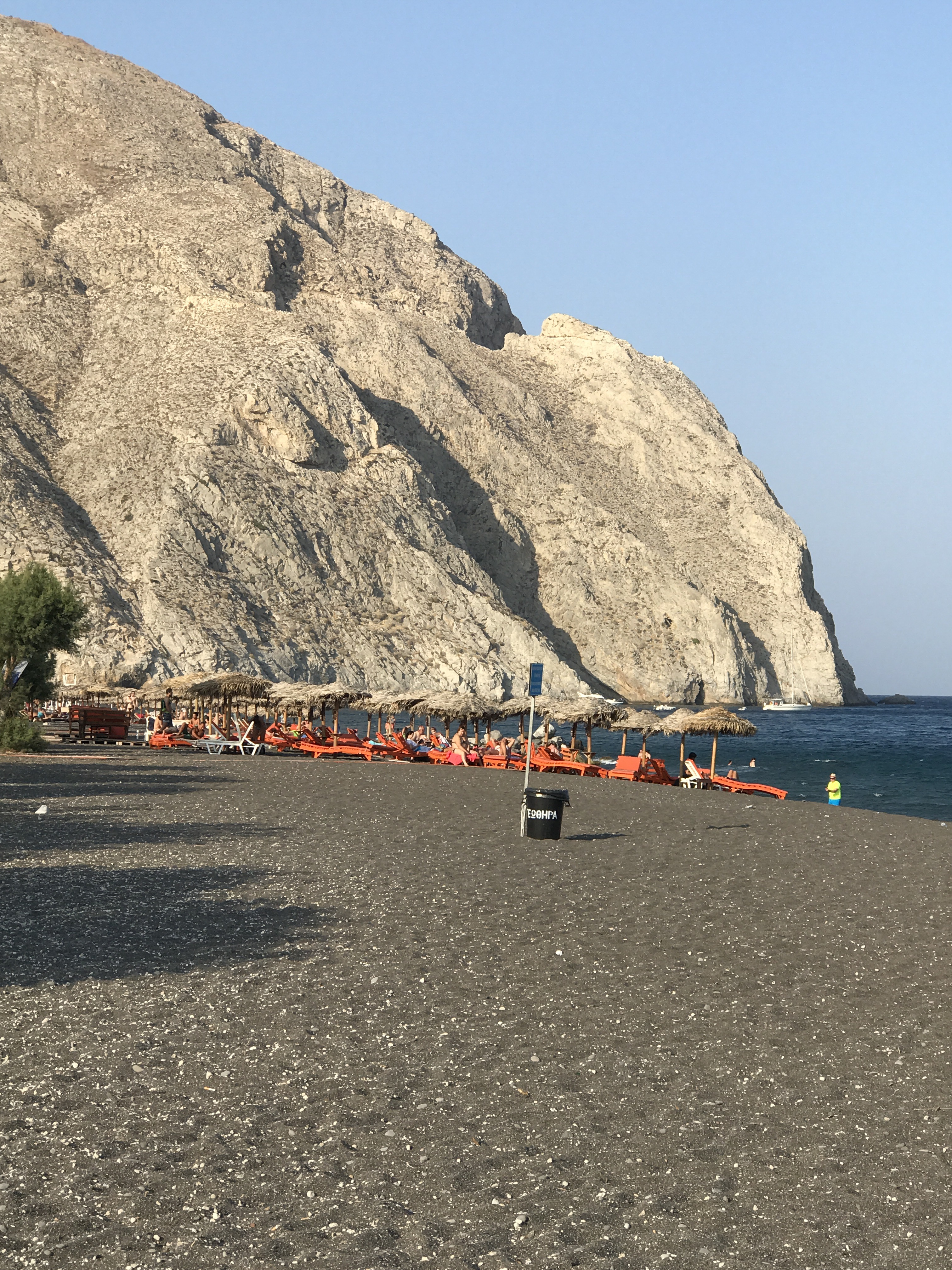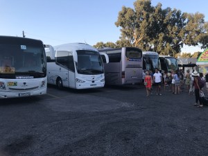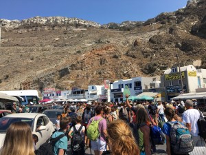 Daarna probeerden we een bus richting Perissa te pakken aan het centrale busstation. Een hachelijke onderneming bleek. De Griekse chaos alom: veel geroep, wanorde, claxons die loeien en je moet af en toe opzij springen om niet onder een bus terecht te komen. De dame aan de “infobalie” schijnt ook maar 1 zin in het Engels machtig te zijn: “is coming”. We zijn dan maarzelf aan elke chauffeur gaan vragen welke kant hij uitging.