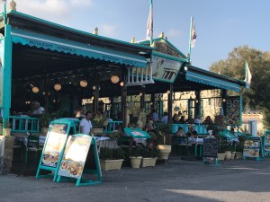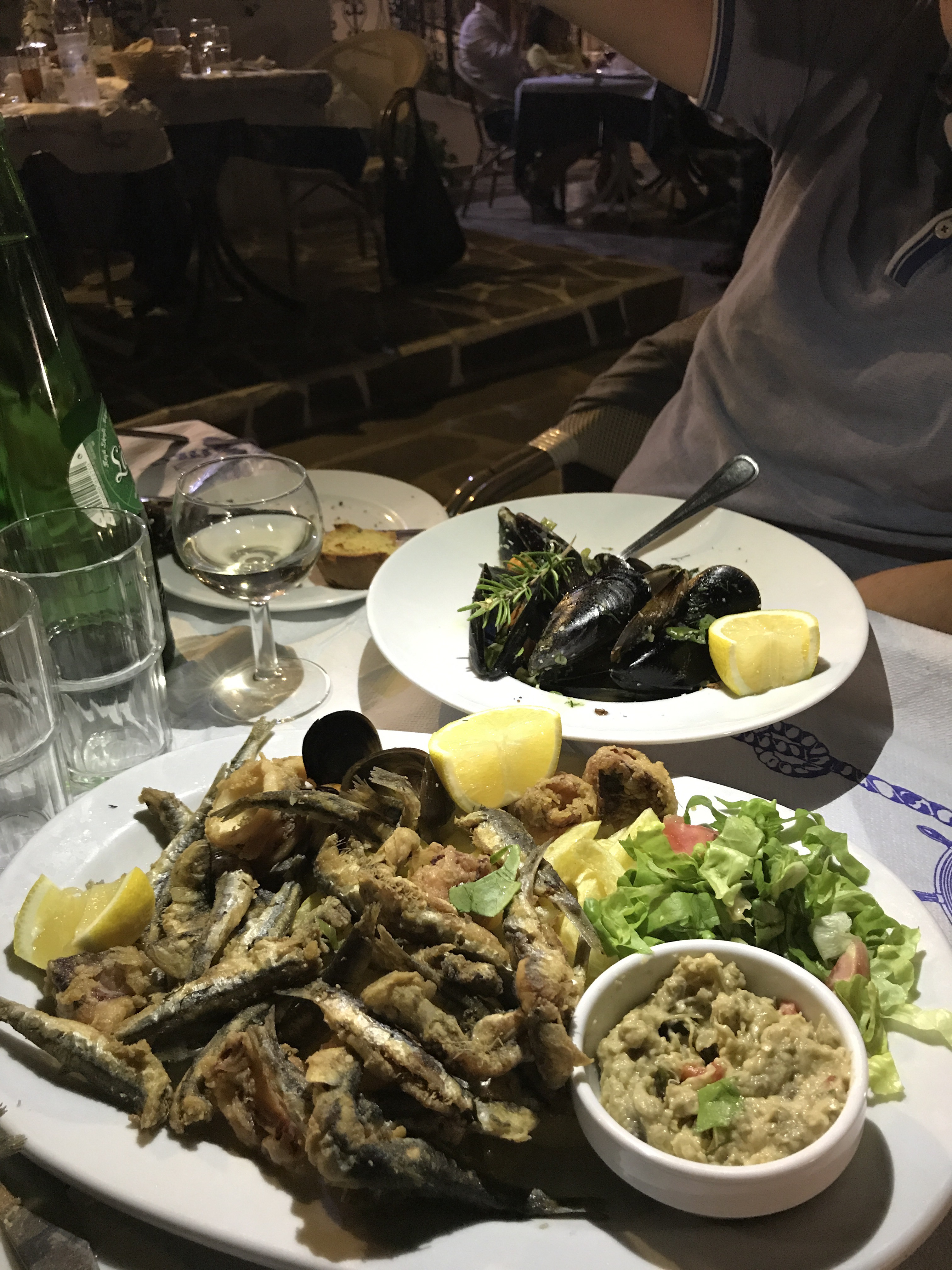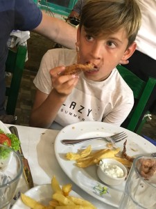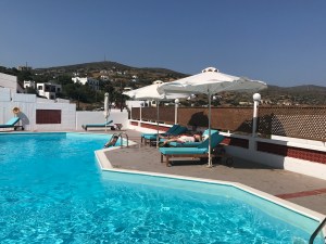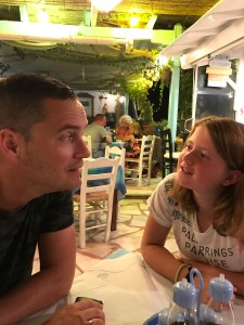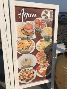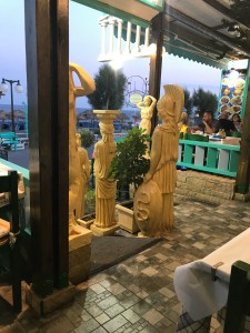 Terug in Perissa hebben we de avond geheel in het thema van de dag afgesloten in restaurant Volcano (het type van “over the top”) met zicht op een fontein die de kliffen van Santorini en de vulkaan moest voorstellen.