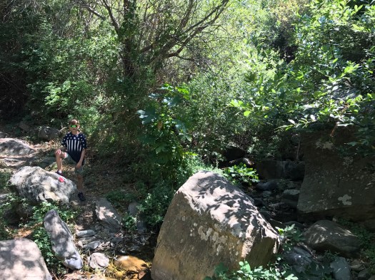 Op sommige stukken is het best wel smal en moet je wachten of – in het geval van de kinderen – krijg je al eens een zwiepende staart in je gezicht. En de geur van alles wat zo’n 100 ezels achterlaten (vergeet niet dat het volle zon en 30 graden is), is ook allesoverheersend.