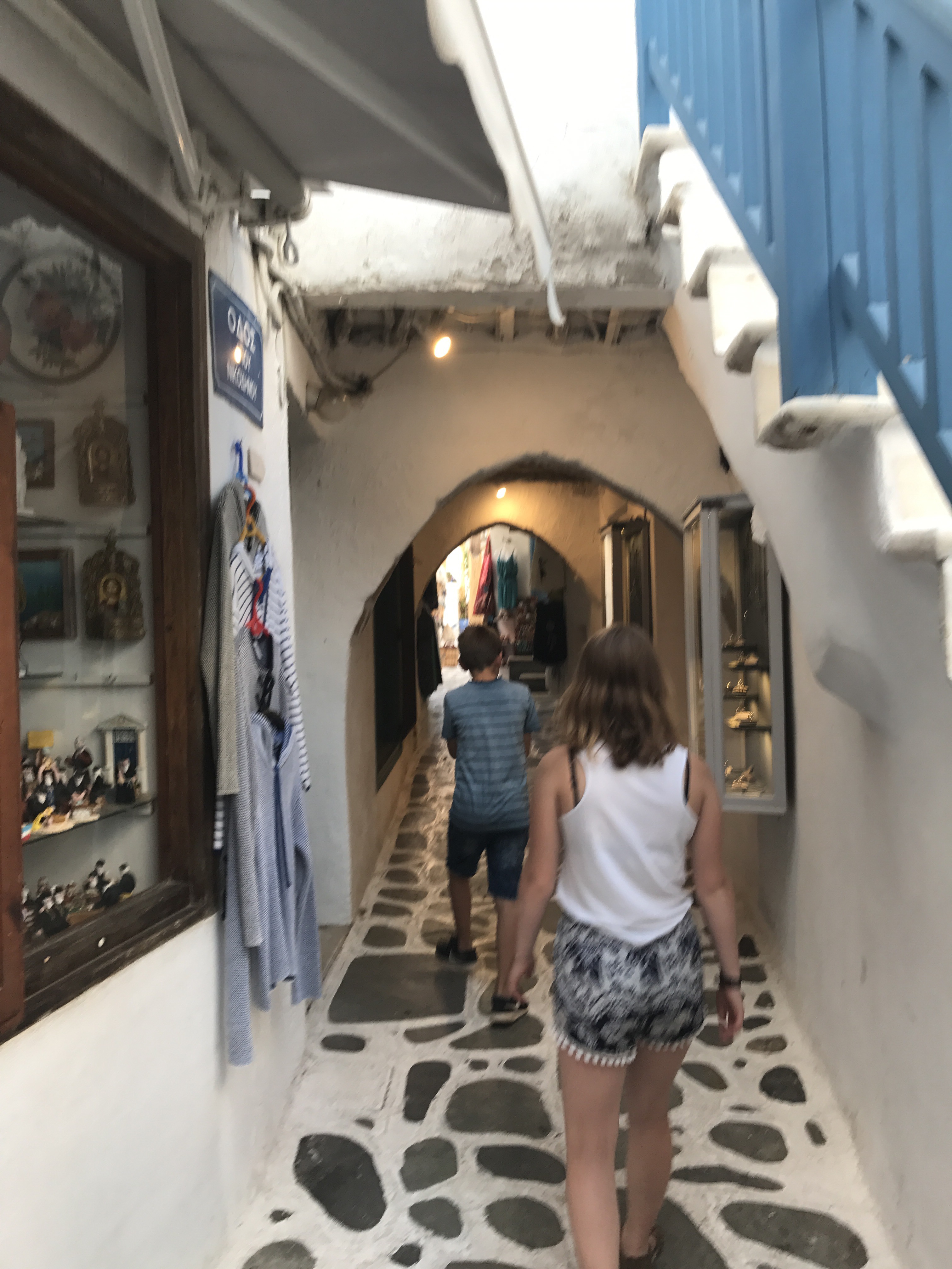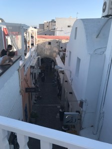 We liepen nog even rond in de gezellige straatjes van Fira, maar daar beleefden we eerlijk gezegd weinig plezier aan, het is er met momenten over de koppen lopen. Hier wordt het duidelijk dat Santorini uit zijn voegen barst en vooral zich richt naar cruise- en Aziatische toeristen, die wel wat luxe gewoon zijn.